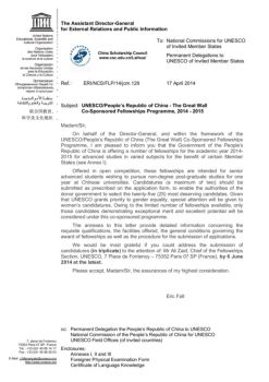 On behalf of the Director-General, and within the framework of the UNESCO/People’s Republic of China (The Great Wall) Co-Sponsored Fellowships