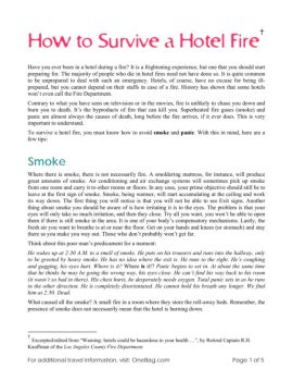 For additional travel information, visit: OneBag.com Page 1 of 5 How to Survive a Hotel Fire† Have you ever been in a hotel during a fire? It is a frightening ...