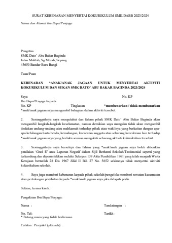 BORANG SURAT KEBENARAN MENYERTAI KOKURIKULUM 2023