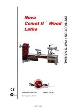118-0717-005 Nova Comet II TM Wood Lathe . Publication No. 118-0717-005 Updated 17th July 2013 Patent Application 593-446