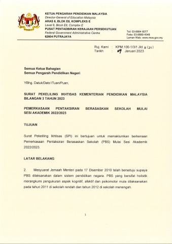 SPI KPM Bil.3 Tahun 2023 - Pemerkasaan Pentaksiran Berasaskan Sekolah Mulai Sesi Akademik 2022 2023