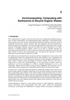 2 Vermicomposting: Composting with Earthworms to Recycle Organic Wastes Jorge Domínguez 1 and María Gómez-Brandón 2 1Universidade de Vigo 2University of Innsbruck