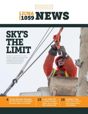 Inside you’ll find a feature celebrating former Business Manager Jim MacKinnon's 50th year with Local 1059, photos from our most recent members' events, a link to our brand new recruitment ad, and much more.