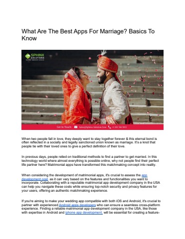 Top apps for marriage help people find the perfect match with ease. Read the blog and know all aspects and key examples of matrimonial mobile applications.