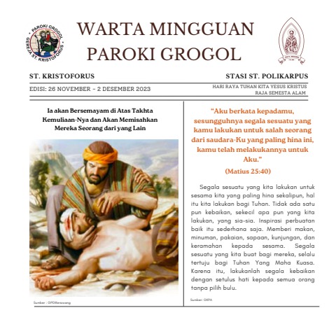 Warta Paroki 16 Nov - 2 Des