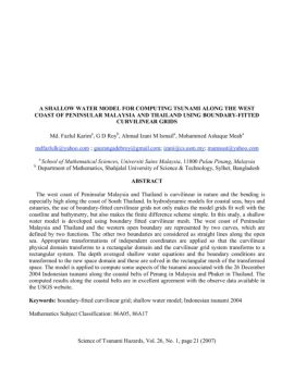 a shallow wa ter model for computing tsunami along the we st coast of peninsular malaysia and thailand using boundary-fitted curvilinear grids