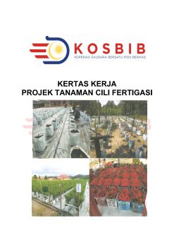 Kerja kerja ini dikemukakan bagi mendapatkan kelulusan Ahli Lembaga Koperasi Saudara Bersatu Ipoh Berhad (Kosbib) berkaitan projek tanaman cili fertigasi yang akan diusahakan bersama dengan syarikat HMJ AGROTECH berkapasiti 4,000 polibeg di atas tanah Lot no : 312366 No Hakmilik : 338304, keluasan 1 ekar bersamaan 43,560ft kaki persegi dilokasi Plot 6, Keramat Pulai, Simpang Pulai, 31600 Gopeng, Perak