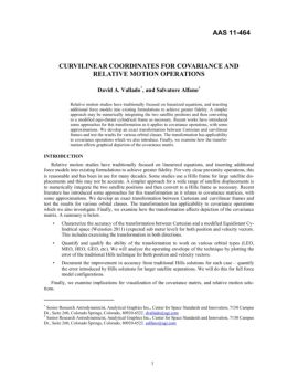 2 Previous studies have introduced curvilinear transformations (Hill, Alfriend, and Sabol, 2008), although they focused on the covariance propagation and orbital ...