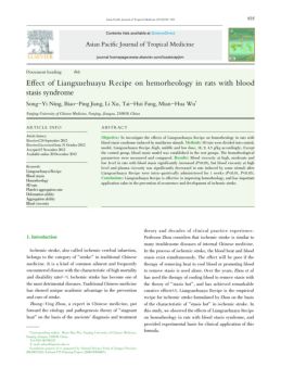 Asian Pacific Journal of Tropical Medicine (2012)935-938 935 Document heading doi: Effect of Liangxuehuayu Recipe on hemorheology in rats with blood