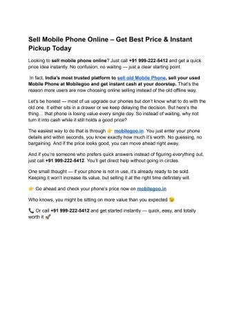 Looking to sell used mobile? Visit https://www.mobilegoo.in/ or call +91(999-222-5412) to get your device’s value instantly—quick and hassle-free.