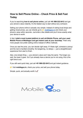 Want to turn your old phone into maximum cash value today? Visit https://www.mobilegoo.in/ or call +91(999-222-5412) to check your device’s value instantly—quick, simple, and hassle-free.