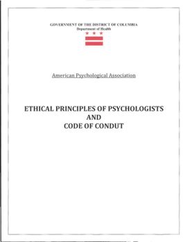 GOVERNMENT OF THE DISTRICT OF COLUMBIA Department of Health *** --American Psychological Association ETHICAL PRINCIPLES OF PSYCHOLOGISTS AND CODE OF CONDUT