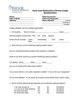Vocal Cord Dysfunction/Chronic Cough Questionnaire - Baylor