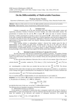 On the Differentiability of Multivariable Functions Pradeep Kumar Pandey Department of Mathematics, Jaypee University of Information Technology, Solan, ...