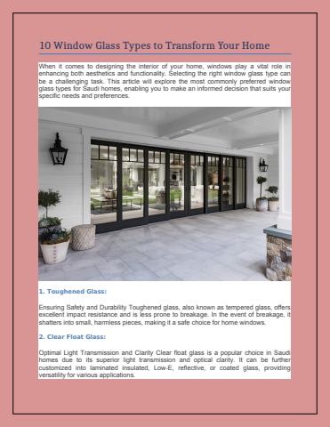 When it comes to designing the interior of your home, windows play a vital role in enhancing both aesthetics and functionality. Selecting the right window glass type can be a challenging task. This article will explore the most commonly preferred window glass types for Saudi homes, enabling you to make an informed decision that suits your specific needs and preferences.