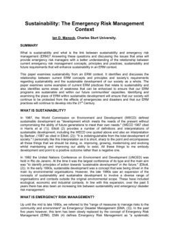 Sustainability: The Emergency Risk Management Context Ian D. Manock, Charles Sturt University. SUMMARY What is sustainability and what is the link between ...