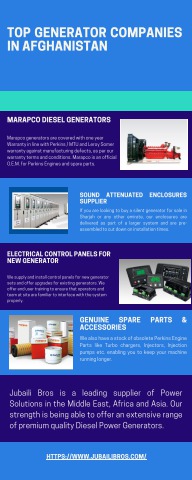 Looking for reliable generator solutions in Afghanistan? Look no further than Jubaili Bros! As one of the leading generator companies globally, we offer top-notch generator sets, spare parts, and comprehensive services tailored to meet the diverse power needs of businesses, industries, and communities across Afghanistan. Trust Jubaili Bros for unmatched quality, reliability, and expertise in power generation solutions. Visit https://rb.gy/esmk9y