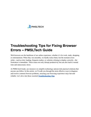 "Discover effective troubleshooting tips to fix common browser errors, improve performance, and ensure smooth browsing with PMSLTech Guide.