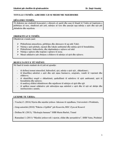 Ligjerata 3 Mediumet mjedisore- Ajri dhe uji 2024