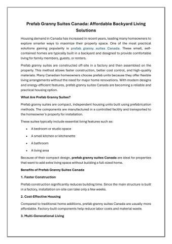 Housing demand in Canada has increased in recent years, leading many homeowners to explore smarter ways to maximize their property space. One of the most practical solutions gaining popularity is prefab granny suites Canada.