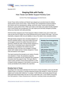5 Support Programs Low-Income Kinship Care Families May be Eligible for in Texas Program Administering Agency Benefits Income and Asset Limits