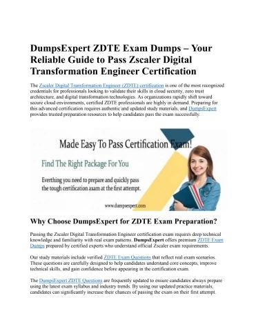 DumpsExpert ZDTE Exam