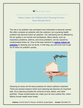Bad Containments, dust and debris in air ducts can be the reason of Many issues, such as respiratory problems, asthma, and sinus problems in your house. So reduce indoor air pollution you should consider professional air duct cleaning services and make your house environment clean again.