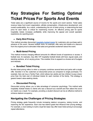 Key Strategies For Setting Optimal Ticket Prices For Sports And Events