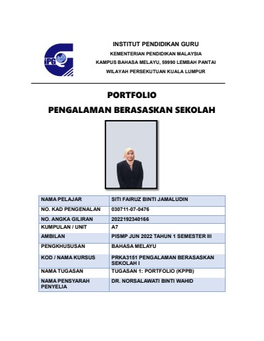 SITI FAIRUZ BINTI JAMALUDIN IPG-Pelajar