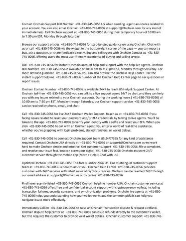 Easy to access 24X7/365 Onchain Contact Number +⭐1-830-745-0056 is available for complete and comprehensive customer support through out US. ️ For Onchain Phone Support +⭐1-830-745-0056, please feel free to contact our support team, we can assist you with any of your issue related Onchain account or wallet. Feel free to dial +⭐1-830-745-0056, our support specialists are available for confidential telephone counseling and longer-term help.