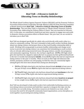 Educating Teens on Healthy Relationships 2 Real Talk includes: A Facilitator’s Guide on Teen Dating Violence A Facilitator’s Guide on Healthy Relationships