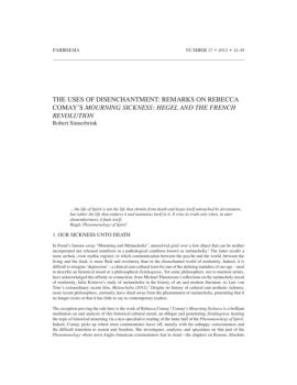 THE USES OF DISENCHANTMENT yet which provides clues for grasping the historical melancholia that Comay argues is our true ‘post-modern’ condition.