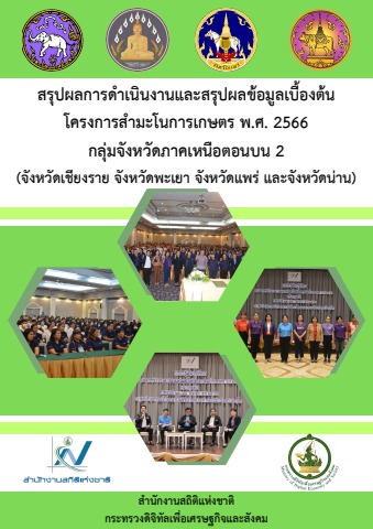 สรุปผลการดำเนินงานและสรุปผลข้อมูลเบื้องต้น โครงการสำมะโนการเกษตร พ.ศ. 2566 กลุ่มจังหวัดภาคเหนือตอนบน 2 (จังหวัดเชียงราย จังหวัดพะเยา จังหวัดแพร่ และจังหวัดน่าน)