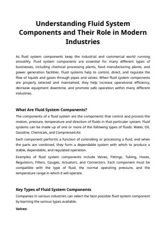 As fluid system components keep the industrial and commercial world running smoothly. Fluid system components are essential for many different types of businesses, including chemical processing plants, food manufacturing plants, and power generation facilities.