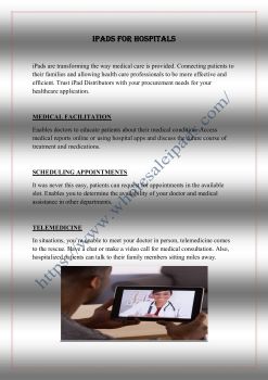 iPads are transforming the way medical care is provided. Connecting patients to their families and allowing health care professionals to be more effective and efficient. Trust iPad Distributors with your procurement needs for your healthcare application.