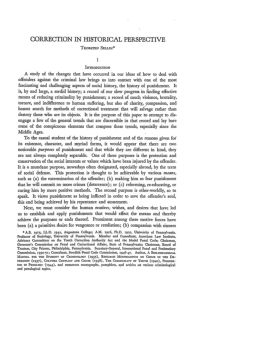 CORRECTION IN HISTORICAL PERSPECTIVE THORSTEN SELLIN* INTRODUCTION A study of the changes that have occurred in our ideas of how to deal with