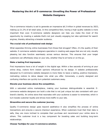 What separates thriving online businesses from those that struggle? Often, it's the quality of their website. E-commerce website designers specialize in creating web pages that are not only visually pleasing but also function seamlessly across various devices. This ensures that your target customers can effortlessly shop on your site, whether they're at home or on the go.
