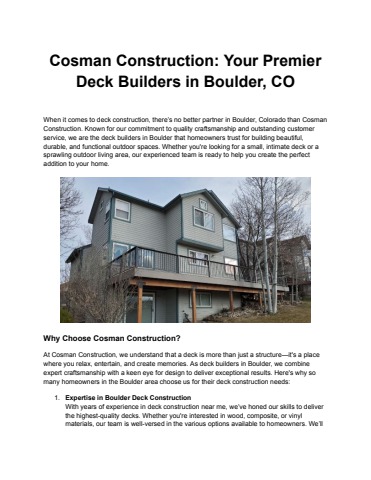 Cosman Construction_ Your Premier Deck Builders in Boulder, CO