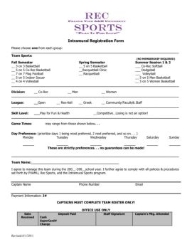 Revised:6/1/2011 Intramural Team Roster/Waiver Form Every Play Must Complete This Page! Team Name: Assumption of Risk, Waiver, and Release from Liability