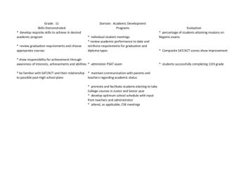 Grade: 11 Domain: Academic Development Skills Demonstrated Programs Evaluation * develop requisite skills to achieve in desired academic program * individual student ...