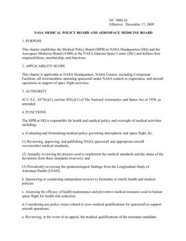 Effective: December 17, 2009 NASA MEDICAL POLICY BOARD AND ...