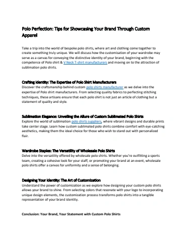 Polo Perfection Tips for Showcasing Your Brand Through Custom Apparel<br>https://www.vendoristapparels.com