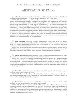 The Third Conference on Function Spaces at SIUE, May 19-23, 1998 ABSTRACTS OF TALKS (1) Johan F.Aarnes,Norwegian University of Science and Technology, Trondheim ...