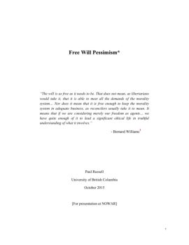 1 Free Will Pessimism* “The will is as free as it needs to be. That does not mean, as libertarians would take it, that it is able to meet all the demands of ...