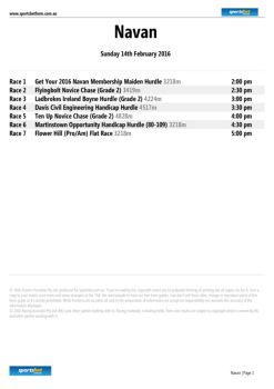 www.sportsbetform.com.au Race 1 Get Your 2016 Navan Membership Maiden Hurdle 3218m UK: 2:00 pm Prize $11,398. 1st $7,379. 2nd $2,279. 3rd $1,080. 4th $480. 5th $180.