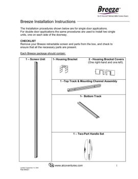 Breeze Installation Instructions www.alcoventures.com Updated: September 12, 2005 Part #4021 1 1 The Installation procedures shown below are for single door applications.