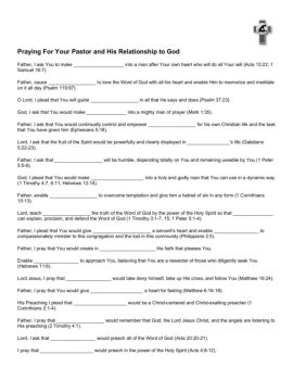 Praying For Your Pastor and His Relationship to God Father, I ask You to make _____ into a man after Your own heart who will do all Your will (Acts 13:22; 1