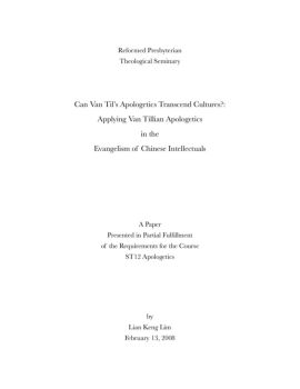 Reformed Presbyterian Theological Seminary Can Van Til’s Apologetics Transcend Cultures?: Applying Van Tillian Apologetics in the Evangelism of Chinese Intellectuals