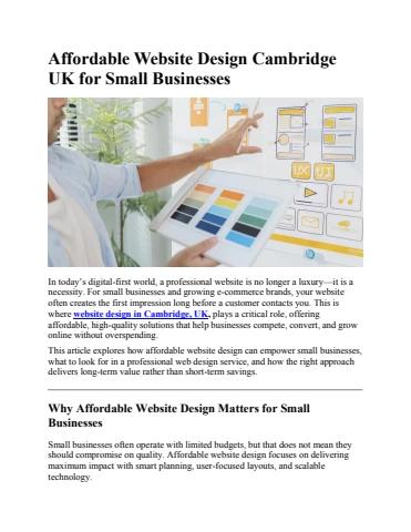 In today’s digital-first world, a professional website is no longer a luxury—it is a necessity. For small businesses and growing e-commerce brands, your website often creates the first impression long before a customer contacts you. This is where website design in Cambridge, UK, plays a critical role, offering affordable, high-quality solutions that help businesses compete, convert, and grow online without overspending.