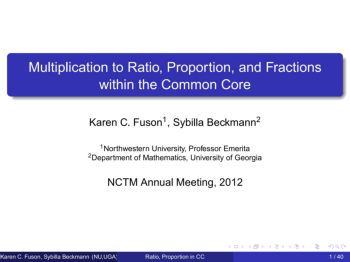 Multiplication to Ratio, Proportion, and Fractions within the Common Core Karen C. Fuson1, Sybilla Beckmann2 1Northwestern University, Professor Emerita
